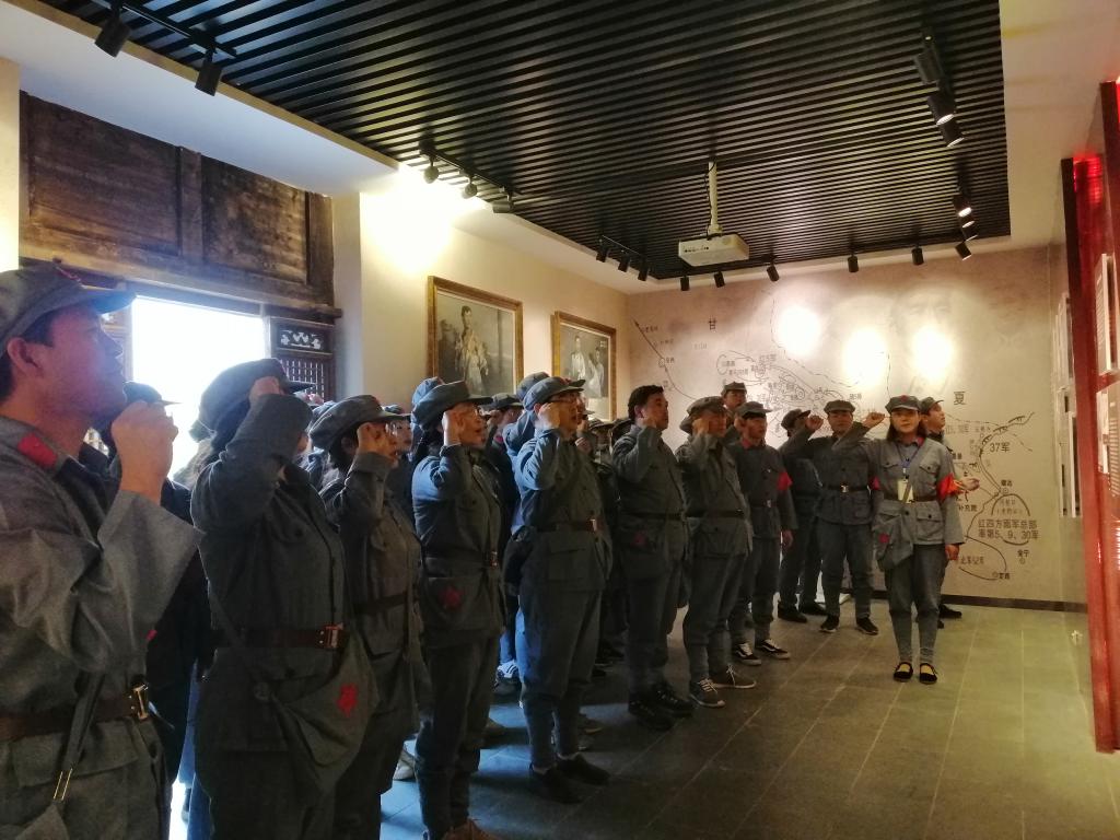 活动伊始,全体师生身穿红军服排队来到龙渠乡白城村中心广场的国旗下,举行了庄严的奏唱国歌和授旗仪式,然后,在工作人员的带领下,前往龙渠烈士陵园,瞻仰了红西路军烈士纪念碑,并向烈士敬献花蓝、脱帽致哀,以悼念为国捐躯的红西路军烈士。为追寻先烈足迹,更进一步了解红西路军在龙渠乡战斗的光辉事迹和动人故事,师生徒步前往墩源村中国工农红军西路军龙渠会议遗址,参观龙渠会议纪念馆和战史馆,感受红西路军艰苦卓绝的斗争史。通过参观活动,师生被红西路军的革命精神深深感动,全体党员来到红色基因传承馆,在鲜艳的党旗下,举起右手,重温了入党誓词。