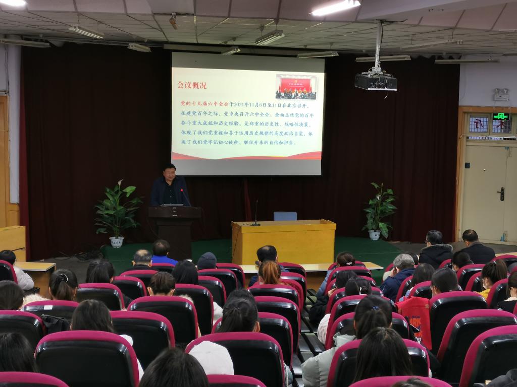 赵柱从《决议》的基本框架、深刻认识总结党的百年奋斗重大成就和历史经验的重大意义、深刻认识党的百年奋斗光辉历程和辉煌成就、深刻认识中国特色社会主义新时代的历史性变革和历史性成就、深刻认识中国共产党百年奋斗的历史意义、中国共产党百年奋斗的历史经验、深刻认识新时代对中国共产党的要求、展望伟大美好的明天,聚力勇毅前行,更加务实答好富民兴陇时代答卷八个方面,结合国内外形势,省情、校情,师生学习、工作实际,对党的十九届六中全会精神进行了全面、细致、深入的解读和阐释。要求全体师生要为中华民族伟大复兴贡献力量,勉励全体教师要争做“四有好老师”,当好员工学习、为人、做事的领路人;全体员工要坚定理想信念、锤炼品格、珍惜时光、努力奋斗。