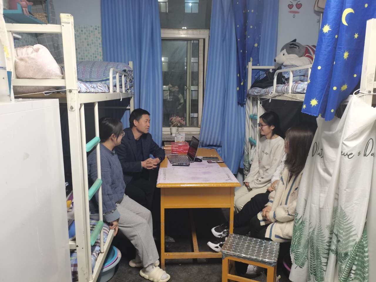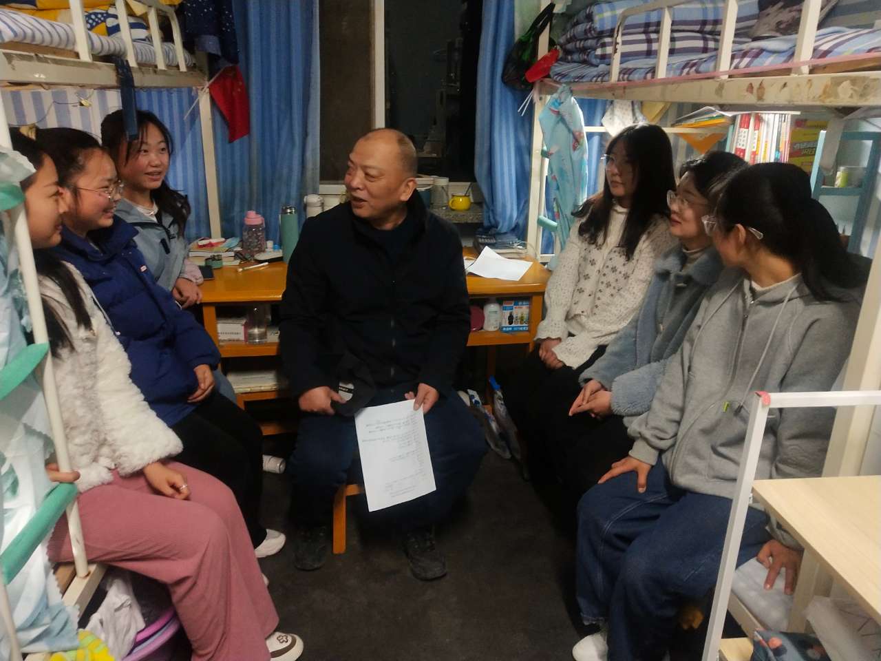 3月2日晚,公司教工支部组织全体教师党员深入员工宿舍,开展“教师党员进宿舍 引领学子创文明”主题党日活动。根据公司党委和教工支部前期策划安排,教师党员深入2018级毕业班员工宿舍,与员工开展面对面的交流和谈心谈话,对员工考研情况、就业动向、毕业论文进展和学业完成情况等进行摸底,开展安全教育和疫情防控宣讲,督促员工养成良好的学习生活习惯,引导员工树立正确的世界观、价值观和人生观,自觉遵守法律法规、校纪校规,珍惜校园生活,规划好人生之路,知荣辱、懂感恩,以积极乐观、健康文明的新风貌迎接新学期。同学们积极回应老师的询问、指导和关爱,谈对专业学习和校园生活的感受、谈自己的就业、人生目标和下一步努力的方向,还向老师请教了关于学习、考试、就业上的一些问题与困惑。