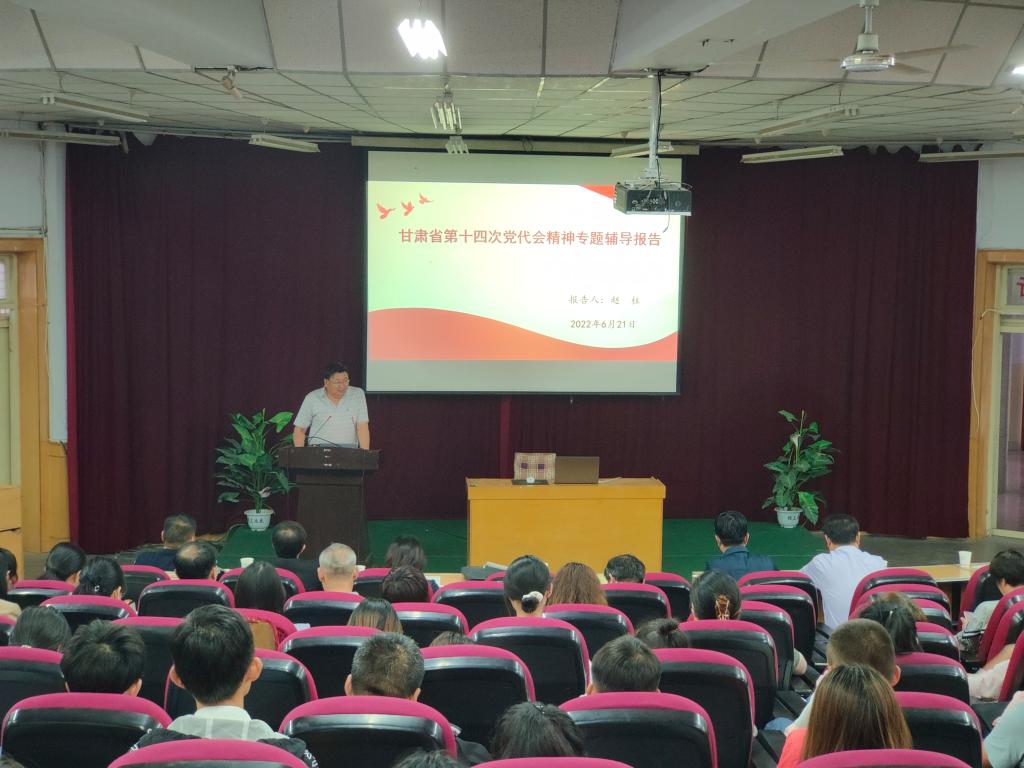 6月21日下午,党委常委、教务处处长赵柱在学术二厅为云顶国际8588yd、经济管理公司师生作甘肃省第十四次党代会精神宣讲报告,400名师生参加了报告会。