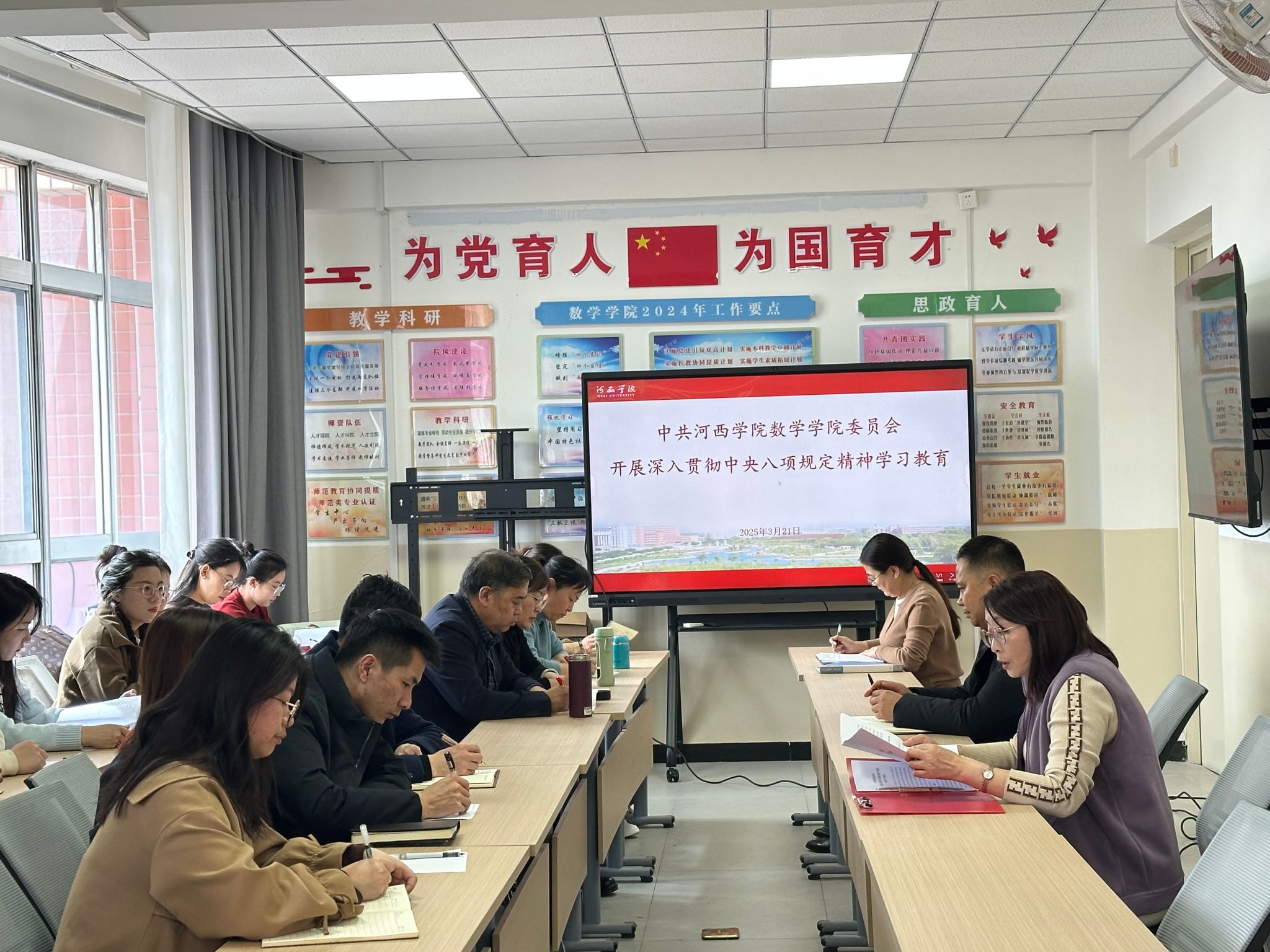 会议强调,每一位师生党员要提高政治站位,扎实开展学习教育,从思想上固本培元,提高党性觉悟,树牢初心使命;从行动上不折不扣落实中央八项规定及其实施细则精神;从作为上,切实增强纪律规矩意识,树立正确权力观、政绩观、事业观。