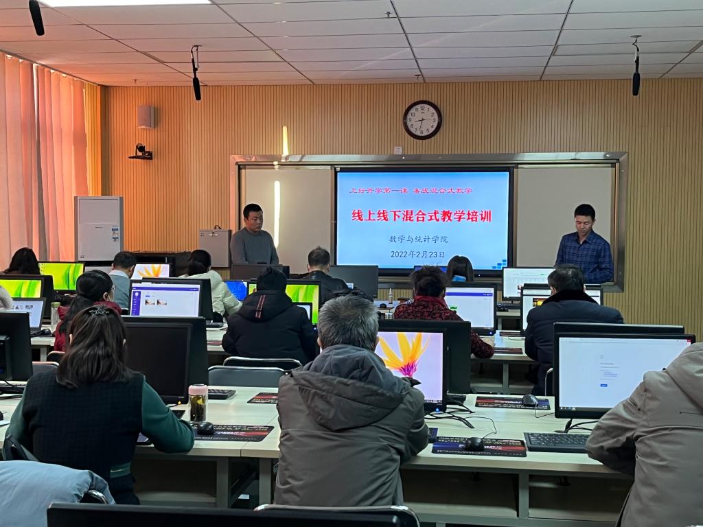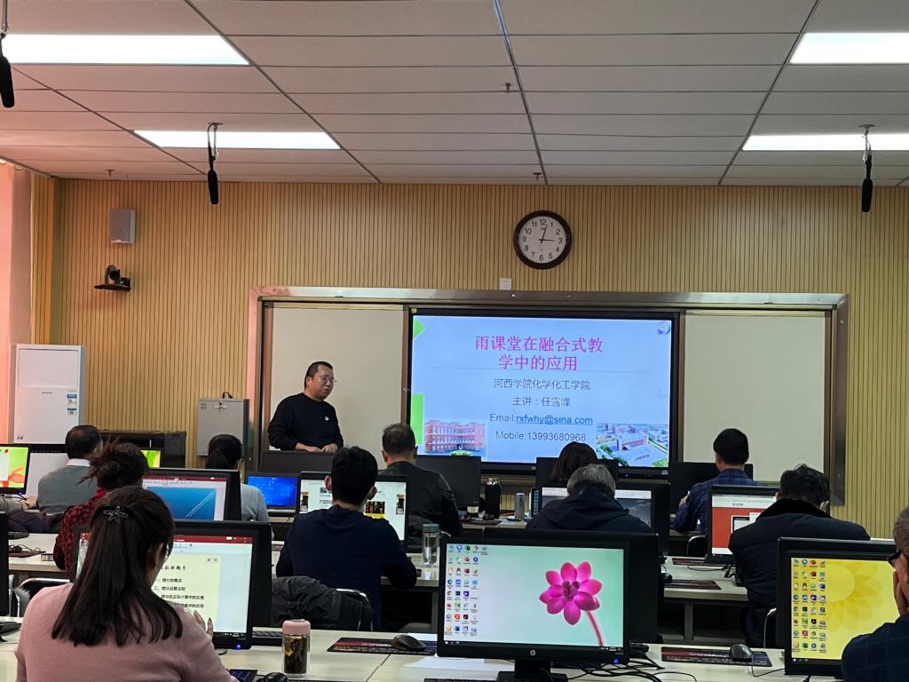 为进一步推进课堂教学改革创新,促进信息技术与数学学科课程的深度融合,提升教师线上线下资源融合的混合式教学能力,2月24日,云顶国际8588yd邀请信息技术与传媒公司的杜建荣副教授和化学化工公司任雪峰教授分别结合超星泛雅和雨课堂教学平台进行了线上线下资源融合的混合式教学应用培训,全院教师参加了培训。