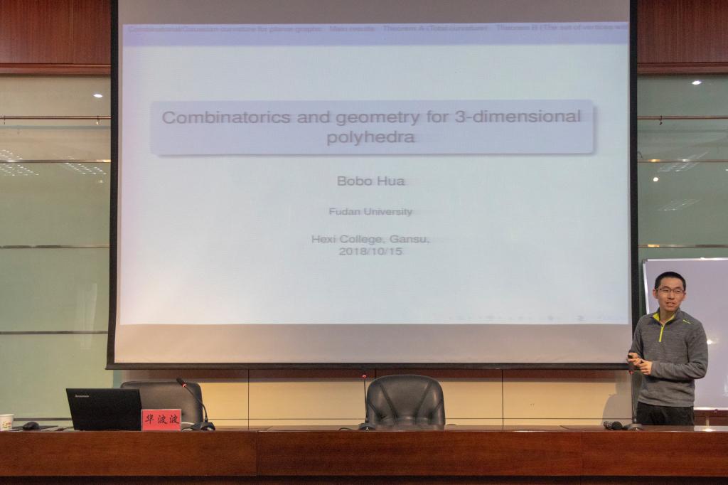 华波波副研究员主要介绍了传统的凸多面体理论,涉及凸多面体的组合与几何性质;通过引入角亏的概念理解一般凸性的刻画。最后还介绍了一些该方向的最新进展和公开问题。