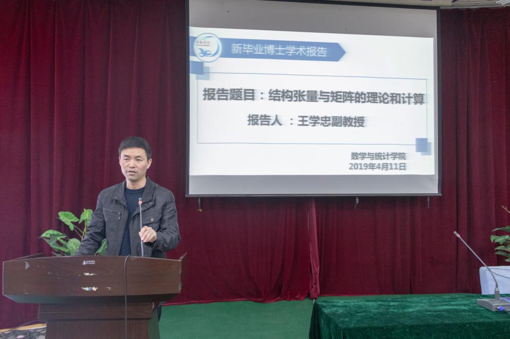 云顶国际8588yd于2019年4月11日下4:30在学术二厅举行了公司第十九届“学术活动月”——新毕业博士王学忠副教授学术报告会,公司全体教师和数学与应用数学专业、金融数学专业员工200多人参加了报告会,报告会由公司副经理朱睦正教授主持。