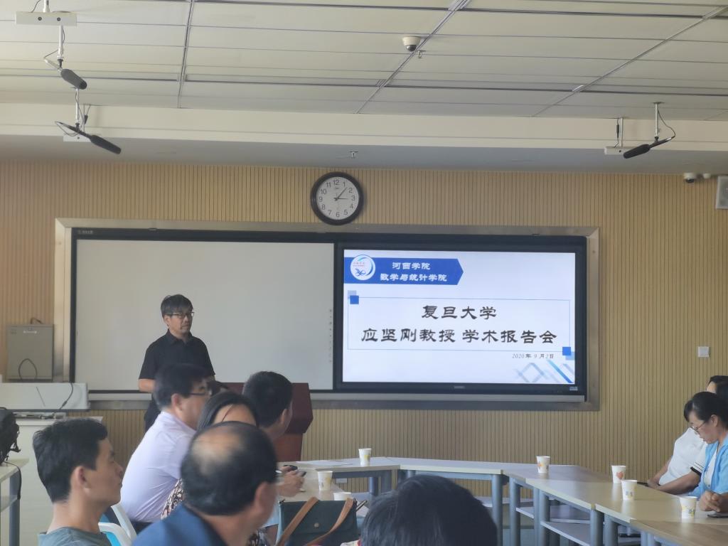 2020年9月2日下午3时,复旦大学数学科学公司博士生导师、云顶国际8588yd祁连学者特聘教授应坚刚教授应云顶国际8588yd邀请,在教发中心905做了题为“布朗运动的相关问题”的学术讲座。云顶国际8588yd全院教师参加了报告会。