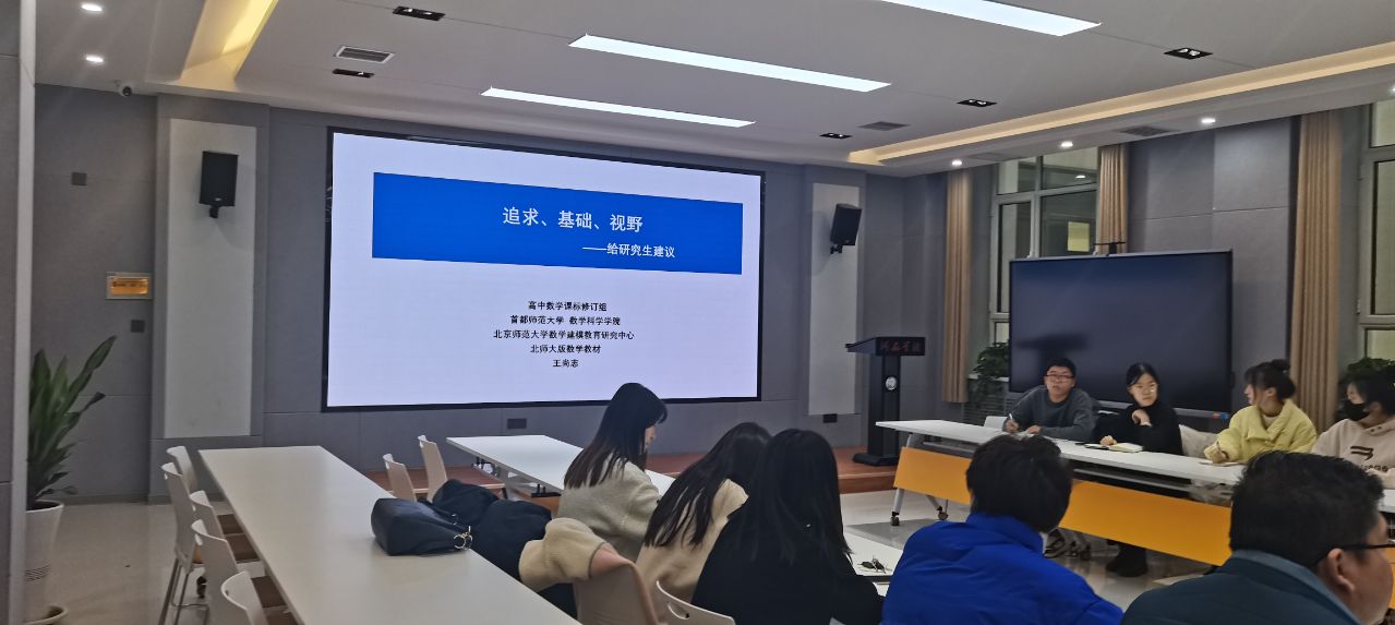 报告会结束后,王尚志教授与研究生进行了热烈的讨论,此次报告会为高观点下的中小学数学教学提供了很多好的范例,促进了教学方式的多样化,转变了教师的教学理念,为员工如何进行自主学习和提高专业水平提供了新的思路。