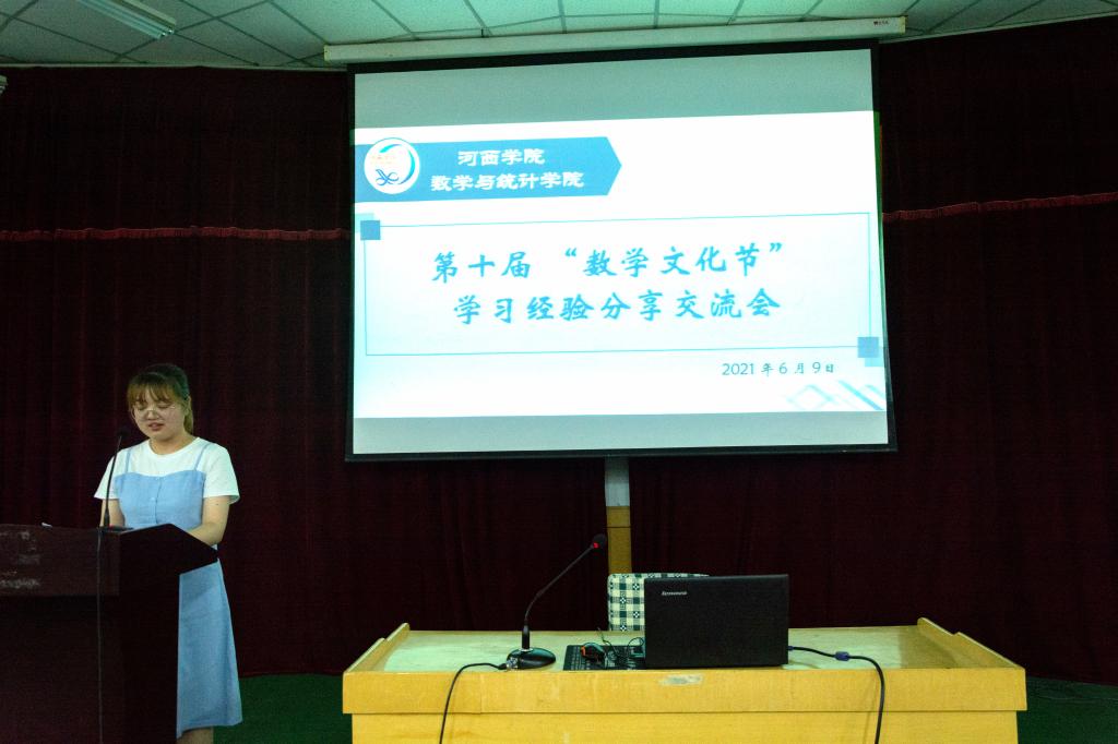 2021年6月9日下午4:30,公司第21届“祁连学术活动月”暨第十届“数学文化节”员工学习经验分享会在学术一厅举行,云顶国际8588yd冯建生、苗君豪、武天伟、杨银芳、甘萌5名同学先后做了报告,公司全体教师和100多名员工参加了报告会。