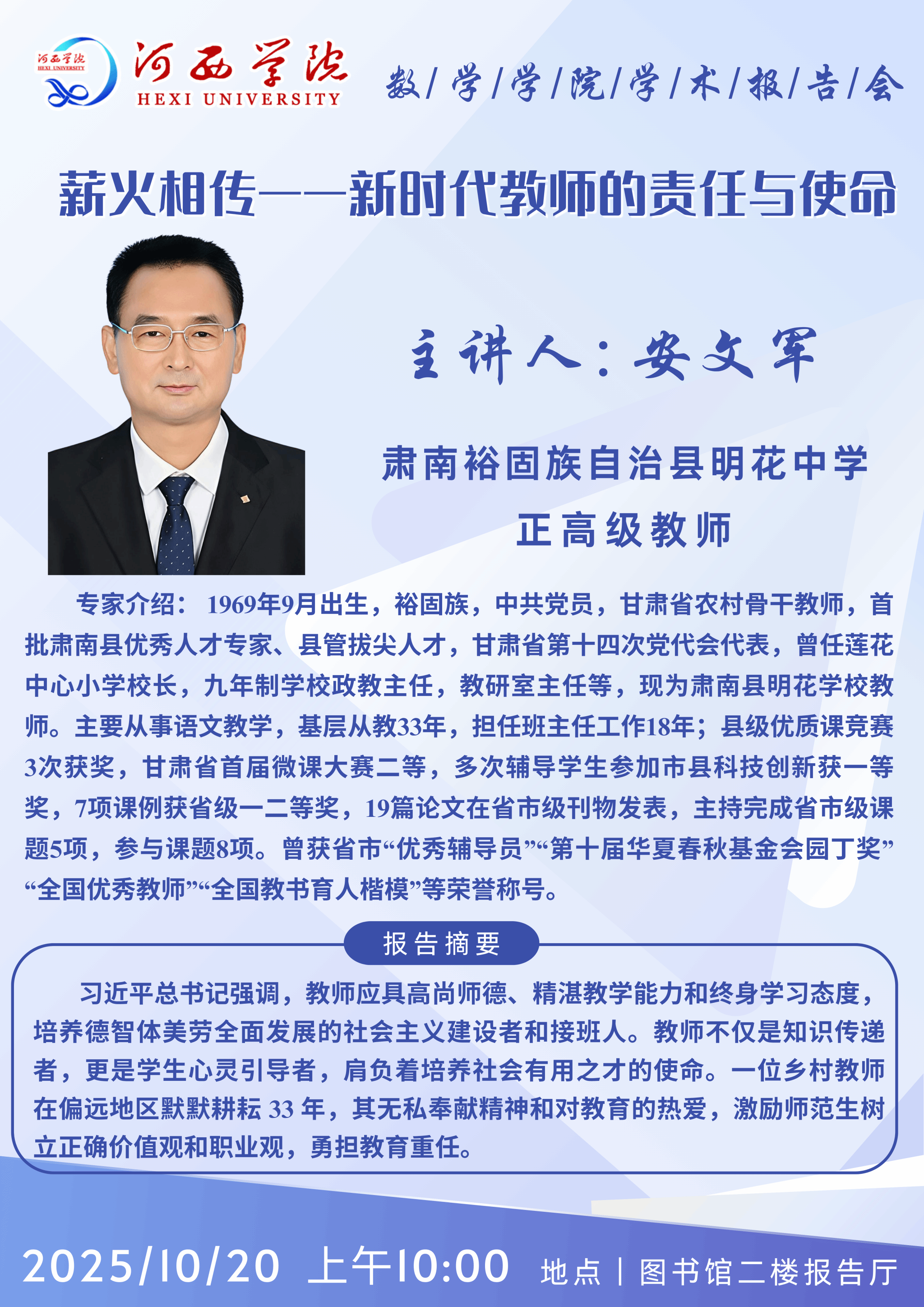 【学术报告】肃南裕固族自治县明花中学 安文军 |薪火相传——新时代教师的责任与使命